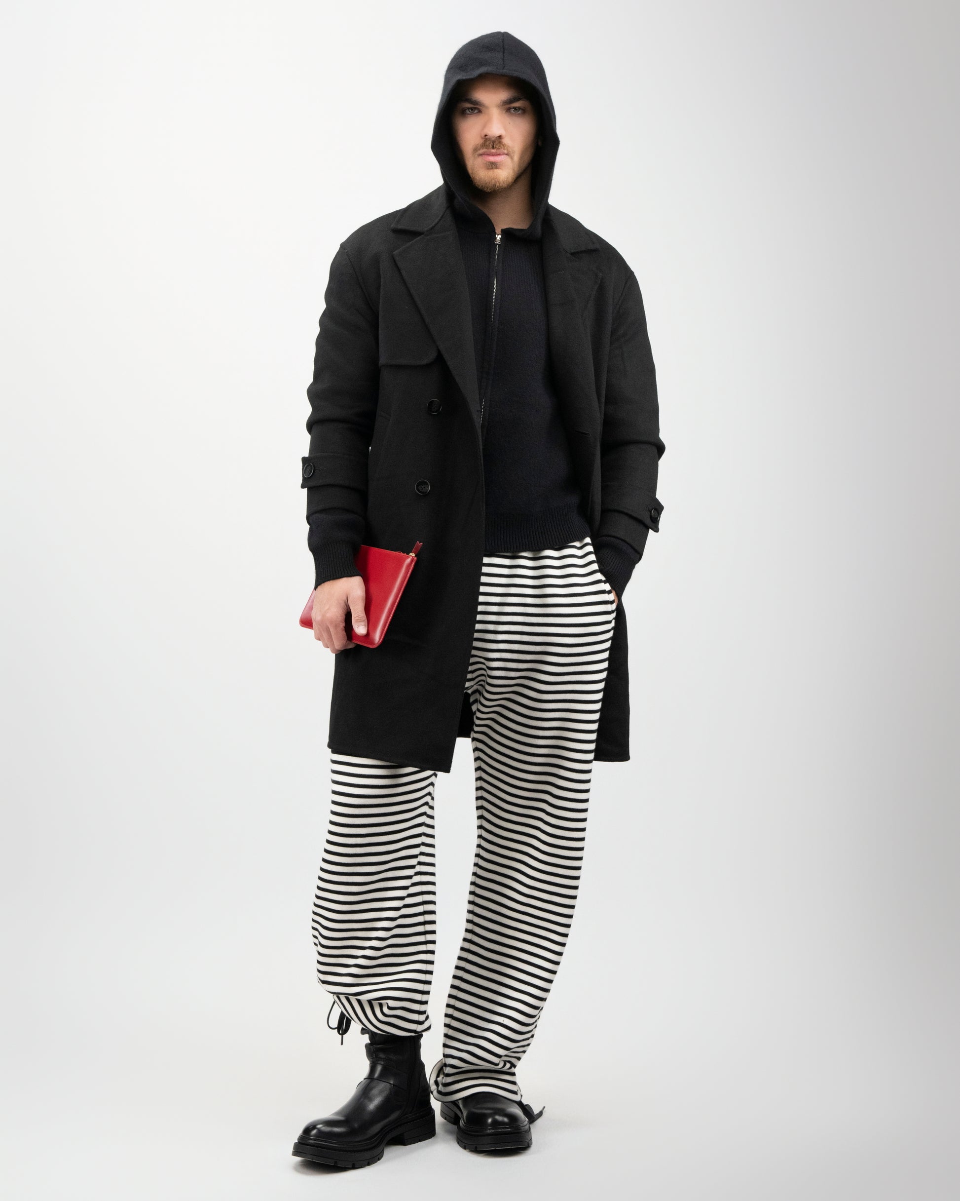 A structured winter coat designed with clean lines and a relaxed, modern silhouette. The Outfield Hooded Coat features a detachable hood layered under a classic double-breasted outer, blending tailored form with everyday functionality. Cut with a straight fit and mid-length profile, it offers ease of movement while maintaining a sharp, composed look.Crafted from a dense woven outer fabric for warmth and durability, the coat includes a smooth inner lining for comfortable layering. Finished with wide lapels, deep front pockets, and a button closure, it’s built for cold days without unnecessary detail.Available in Black and Charcoal.