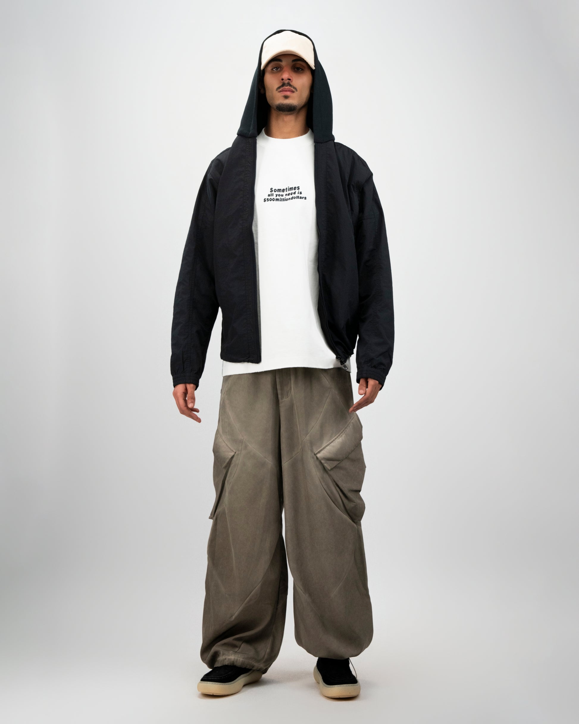 The Crosswind Jacket blends lightweight protection with a relaxed, utilitarian silhouette. Designed with a roomy hood, zip-front closure, and subtle structure, it offers easy layering without bulk. Clean lines and a soft, worn-in feel give it an effortless street sensibility — functional, versatile, and built for everyday movement.Color Options ,Ivory – light, clean, and modern with a fresh outdoor feel