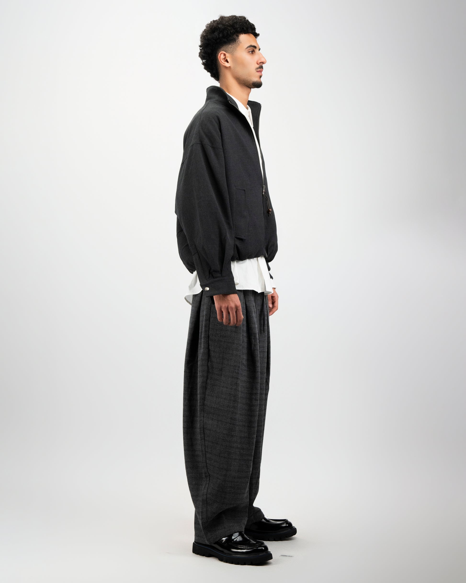 The Shortline Zip Jacket features a cropped, boxy silhouette designed for effortless layering. Cut with a relaxed fit and finished with a full zip front, it balances structure and ease with a modern edge. Clean lines and subtle volume give this piece a sharp, contemporary feel — an everyday layer that anchors both tailored and casual looks.
