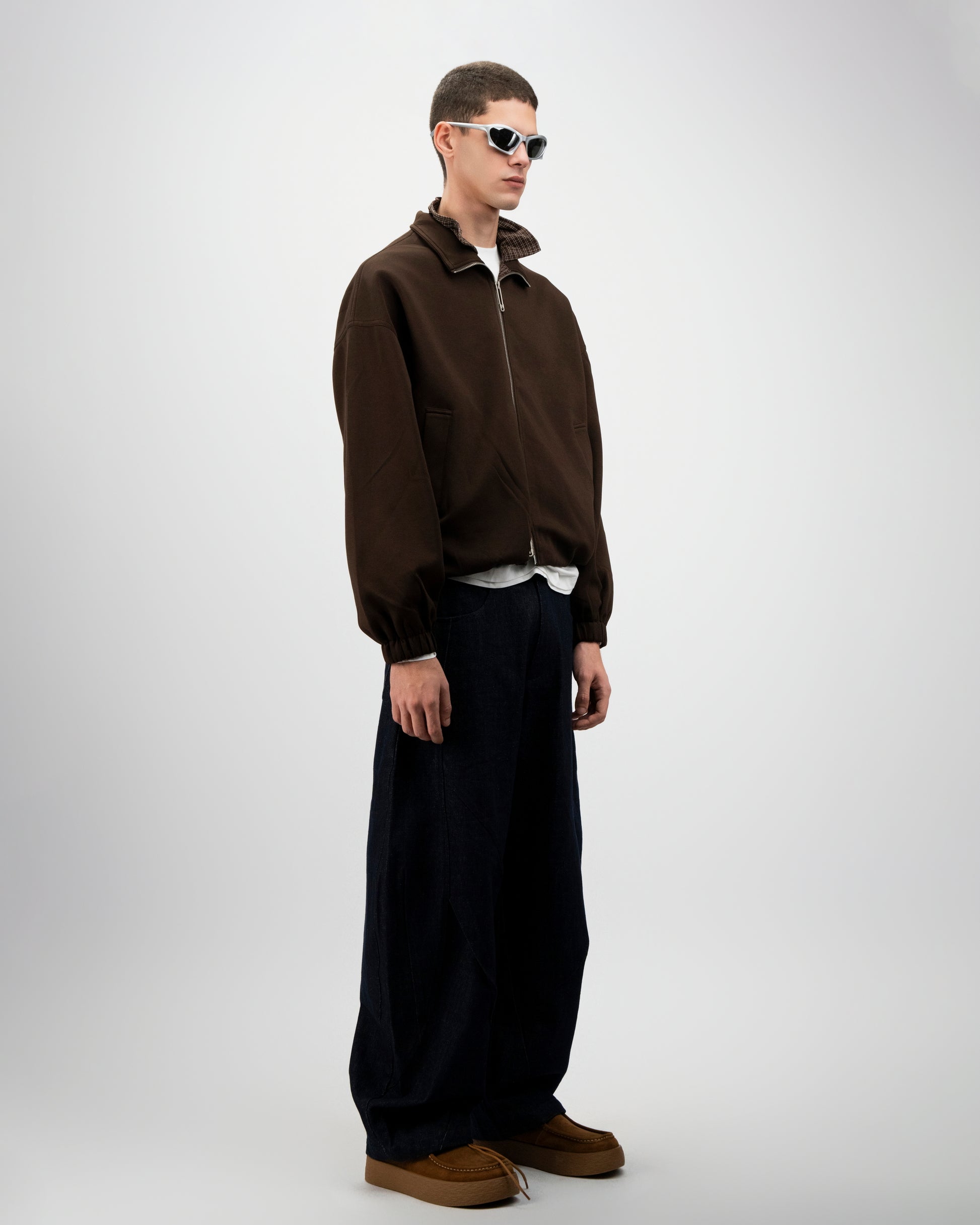 The Stand Collar Zip Jacket is a modern outer layer defined by its built-in collar and relaxed, structured silhouette. Designed with a clean zip front and elasticated cuffs and hem, it offers easy layering with a refined streetwear edge. The stand collar adds subtle shape and coverage, giving the jacket a polished yet effortless feel. Minimal, versatile, and made for everyday wear.Color Options
