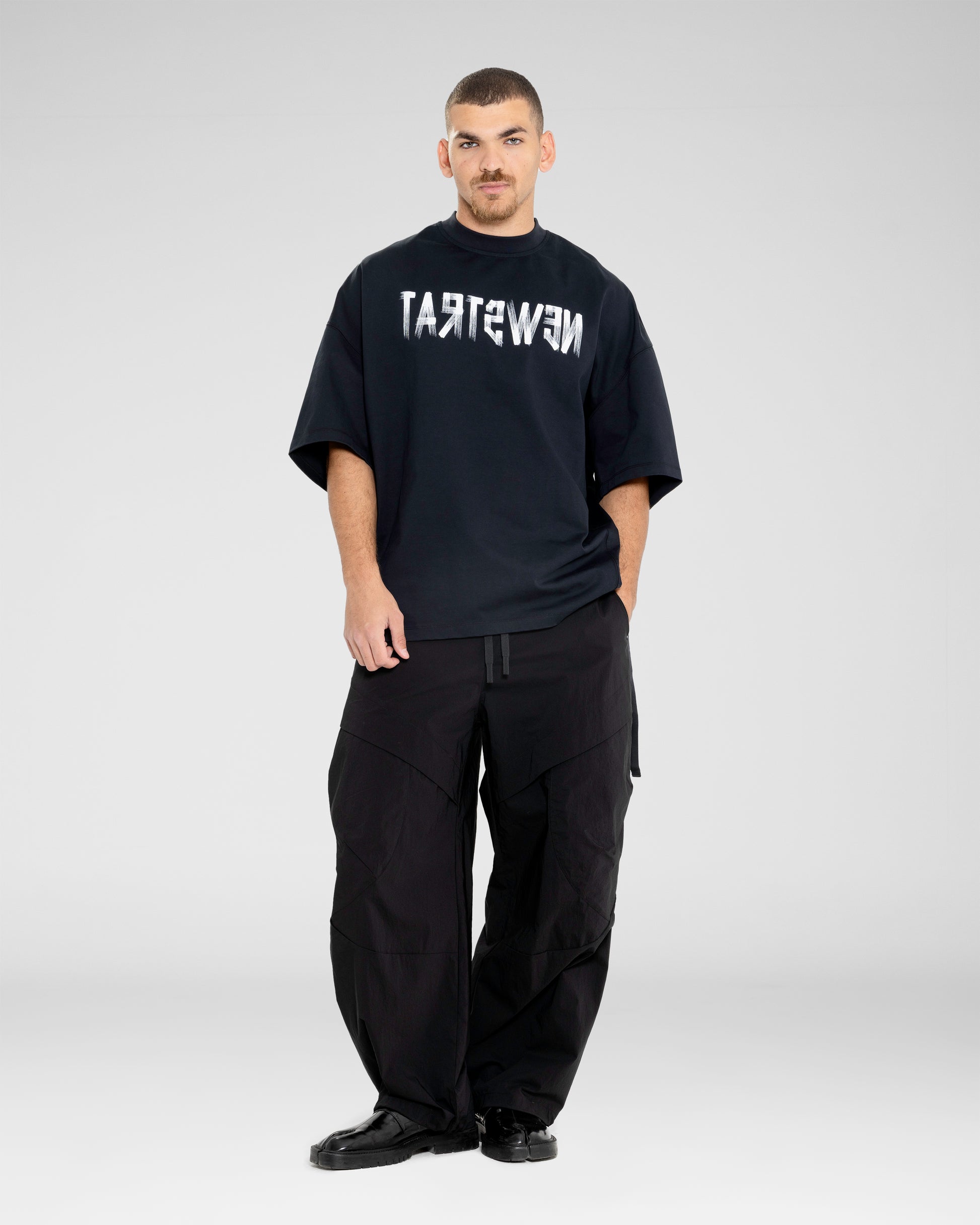 Oversized tee with a mirrored graphic for a playful visual twist.