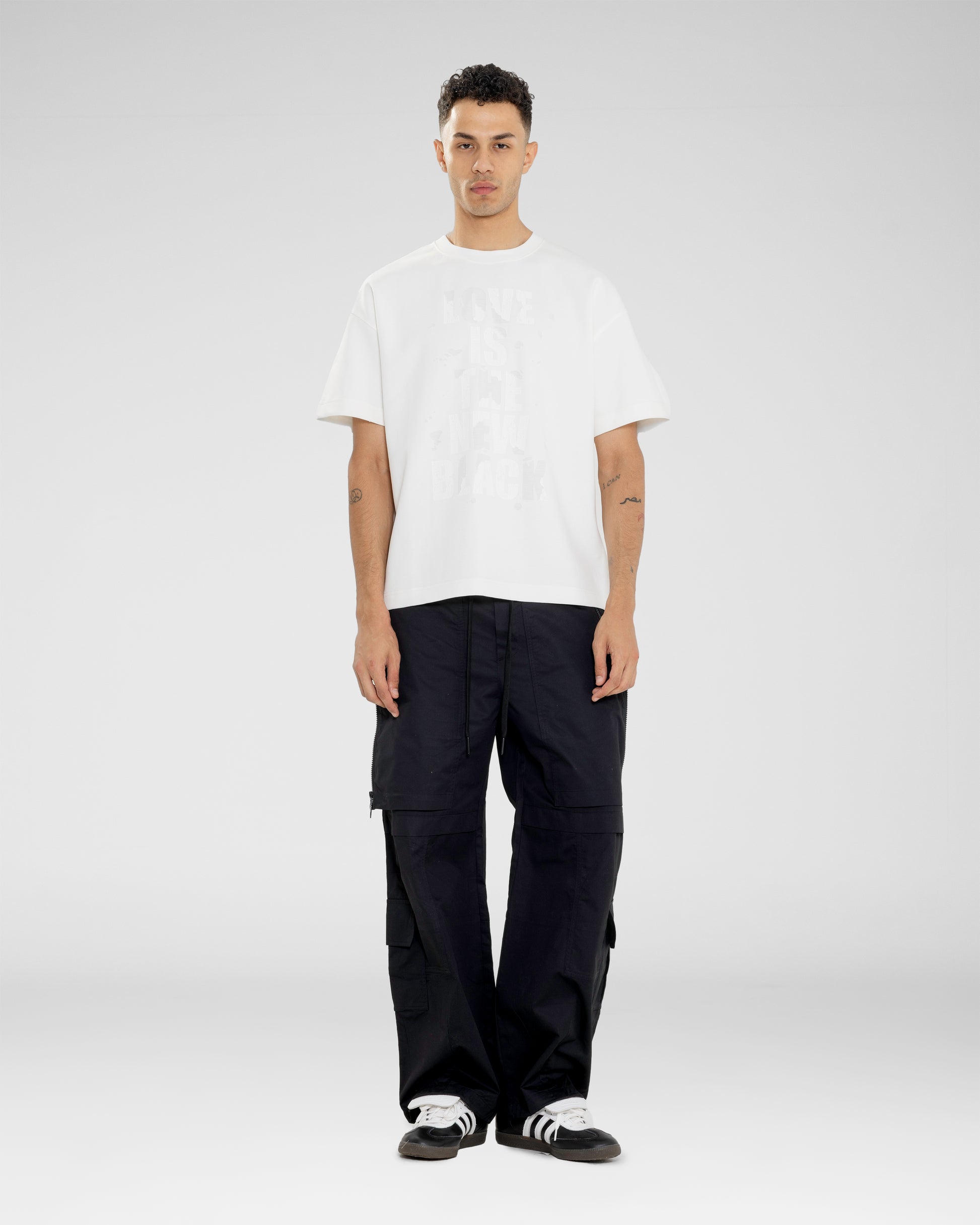 A crisp white T-shirt with a relaxed silhouette and subtle tonal artwork. The White Signal Tee blends simplicity and intent — a statement in quiet design, made for effortless everyday wear.