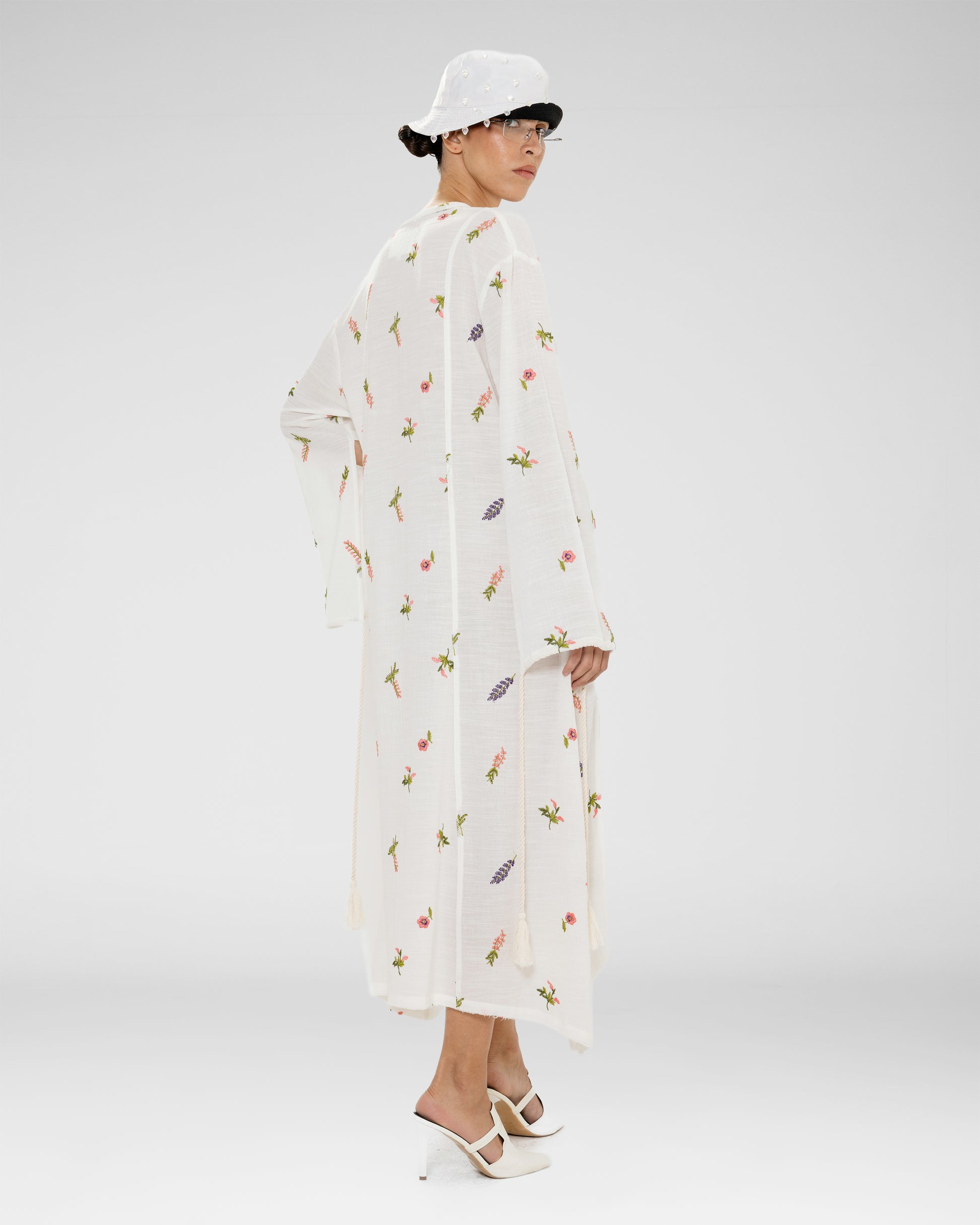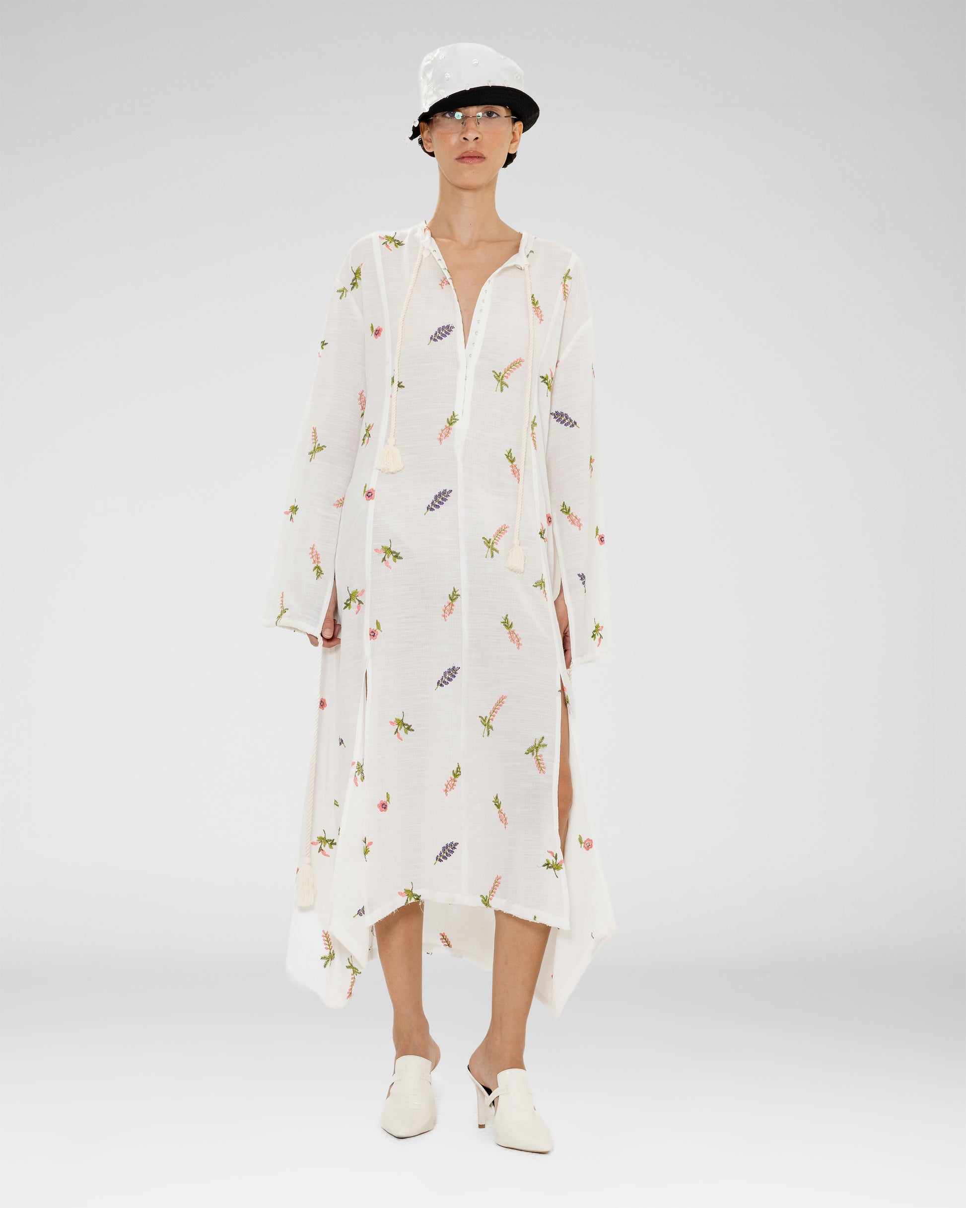 A white sheer knit maxi dress