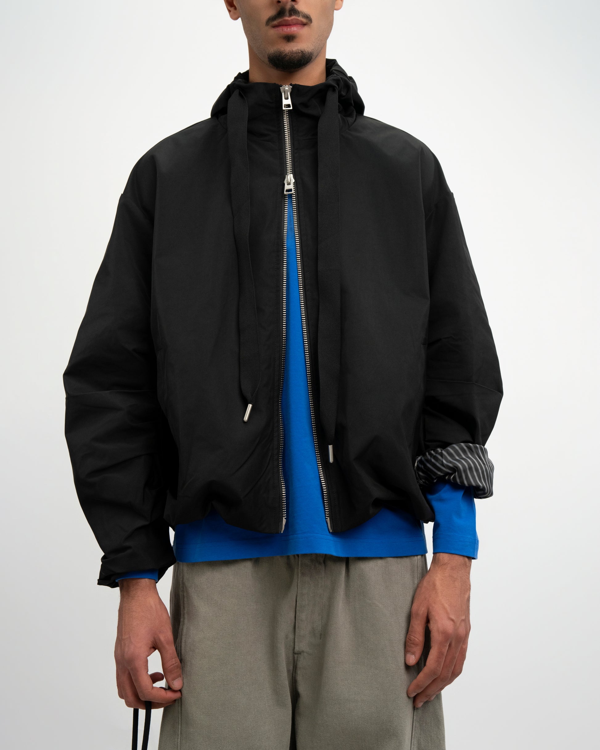 The Crosslayer Hood Jacket is built for everyday movement with a relaxed, utilitarian edge. Designed with a lightweight structure, full zip front, and adjustable hood, it layers easily over knits and tees without bulk. Finished in classic black with subtle detailing, this jacket delivers functional comfort with an understated streetwear presence , versatile, effortless, and made to wear on repeat.