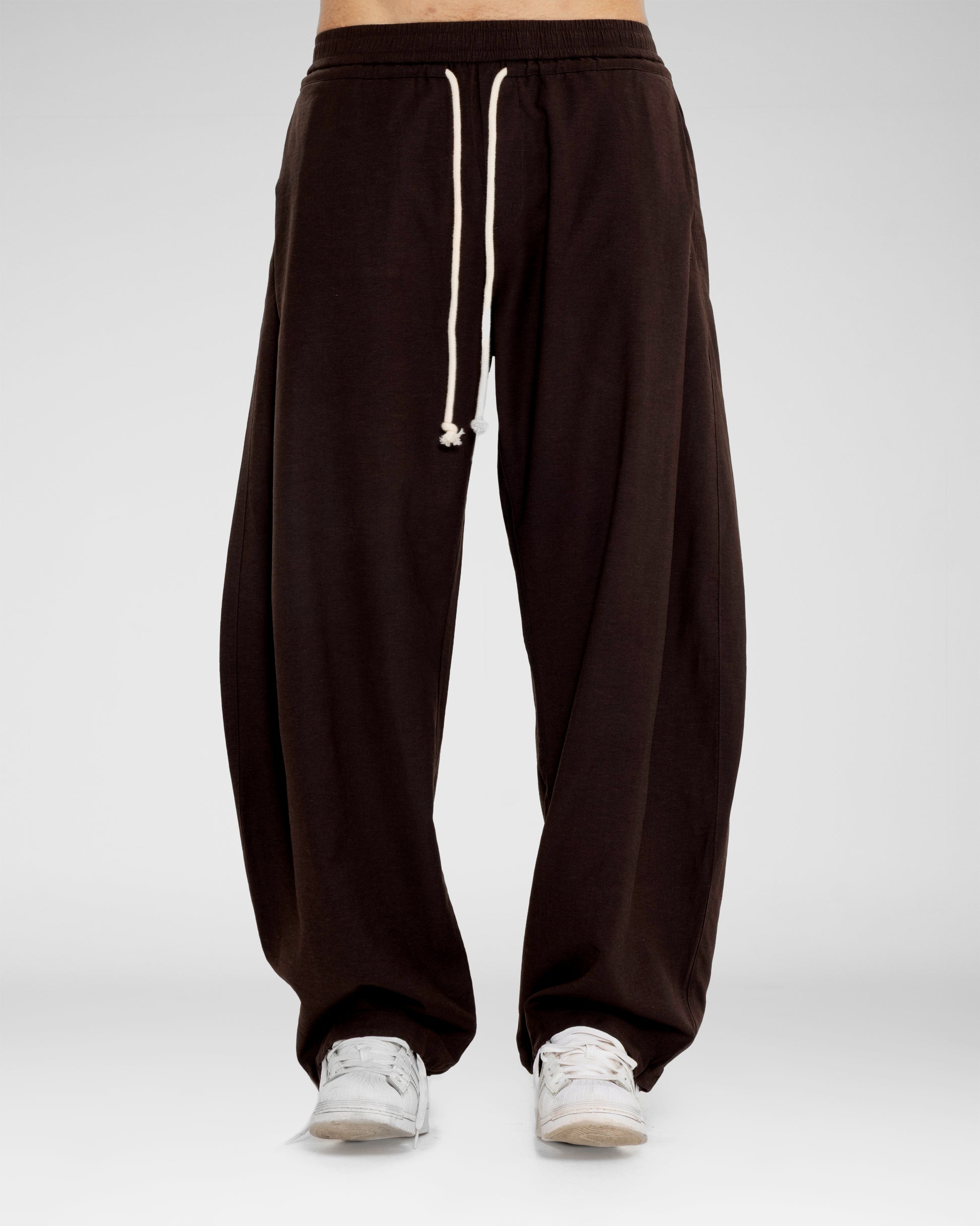 Relaxed wide-leg pants with an elastic drawstring waist and effortless drape, blending ease and movement in a timeless silhouette.