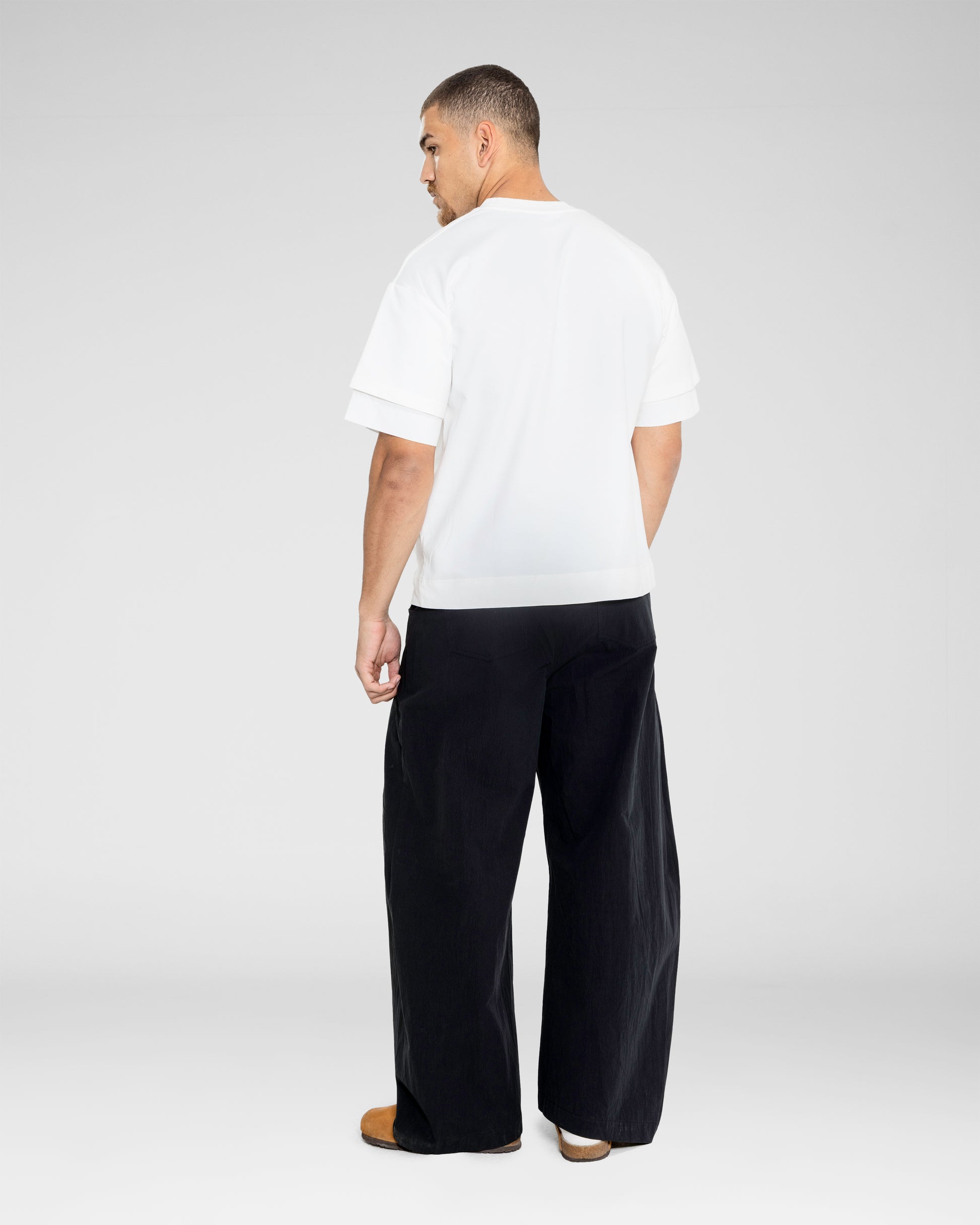 Clean white structured tee with rolled sleeves, delivering a refined everyday essential
